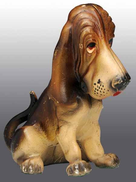 Description Appealing pose of a sitting Basset hound pup with classic doleful expression. Full-figure. A desirable and hard –to-find doorstop. Condition (Near Mint). Size 7 - 1/8” x 7 - 1/4”.