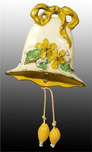 Description Made by Candlestick Company. Top of bell has bow and embossed flowers. Original string and beads. Condition (Excellent). Size 3 - 1/2" x 3 - 1/2".