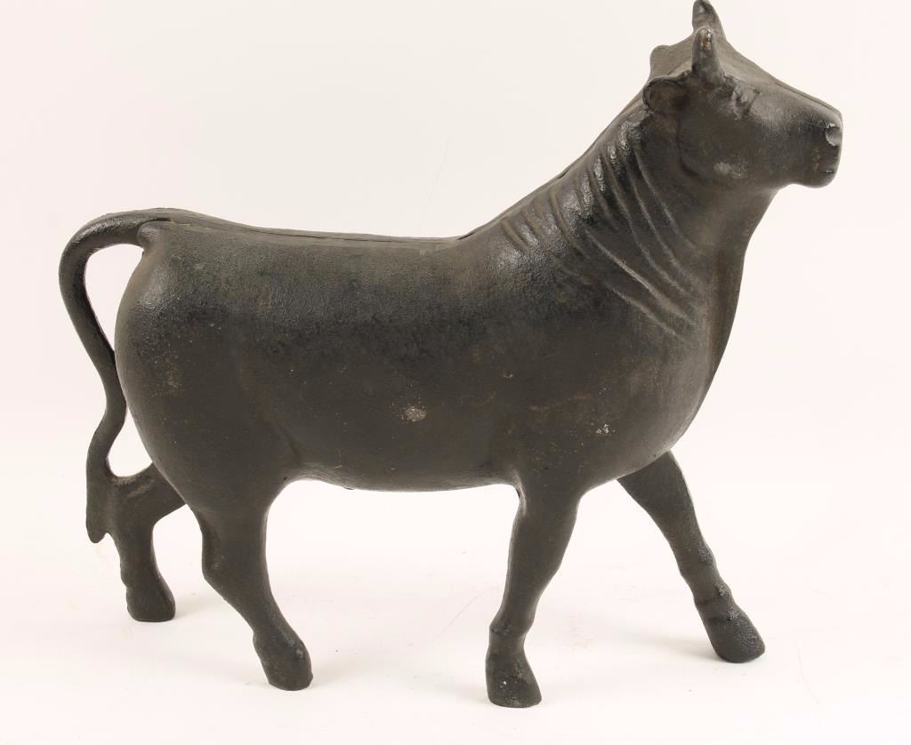 Black bull with head up high. Measures 12 1/2"x14". Great decorator piece!