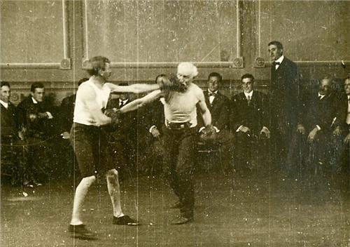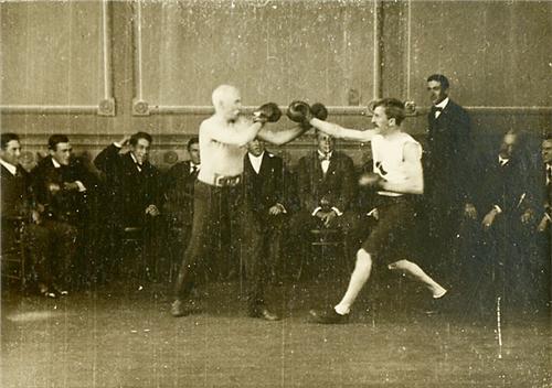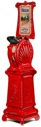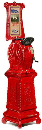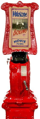 Original coin-operated flip-reel movie viewer with thrilling original Mutoscope reel no. 250: "Boxing". 110 V. Height 75 in. Manufactured by the "American Mutoscope & Biograph Co., N.Y." - Extremely rare body and reel. - A spectacular exhibition piece and collector's item!<Br>