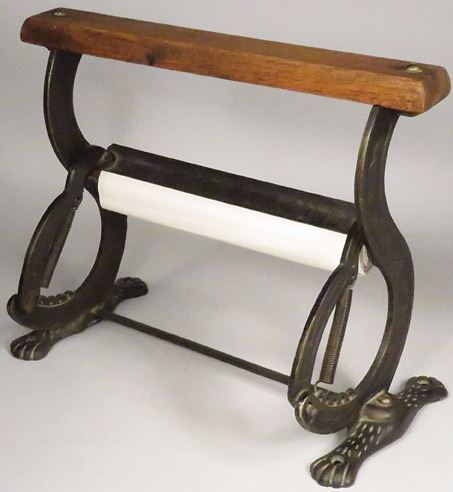 Cast Iron Country Store Paper Dispenser and Cutter. Great small size. Good original condition. 13 3/4 X 11 1/4 X 7 inches.