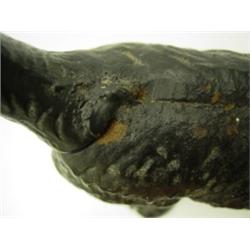 Cast iron doorstop. Black painted Scottie dog. Not marked. Circa 1930. Weighs 8.25 pounds. 7-3/4" x 10-1/4". Condition: Minor corrosion at tail.