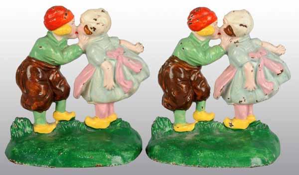 Description Made by Hubley, numbered “332”. Depicts young Dutch couple kissing. Great vivid colors. Condition (Excellent). Size 4 - 3/4”.