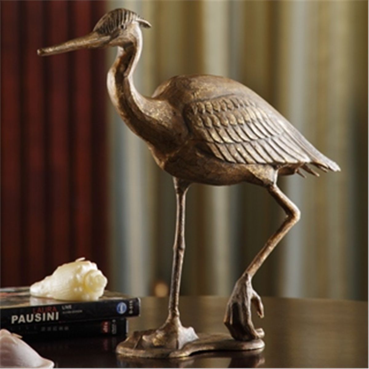 Cast Iron Egret Sculpture - 12" X 14" X 3.5"