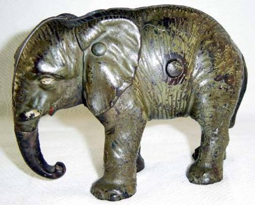 Cast Iron Elephant Bank, Not a reproduction, never repainted, most original paint still present, 5" x 7"