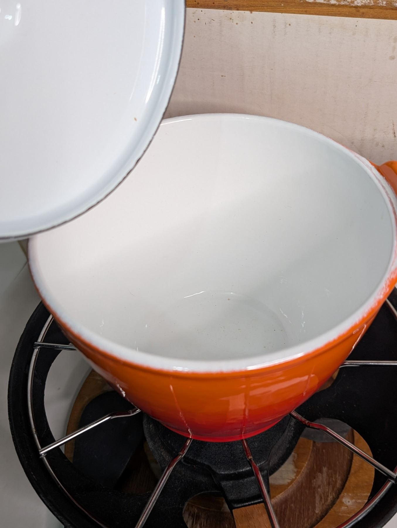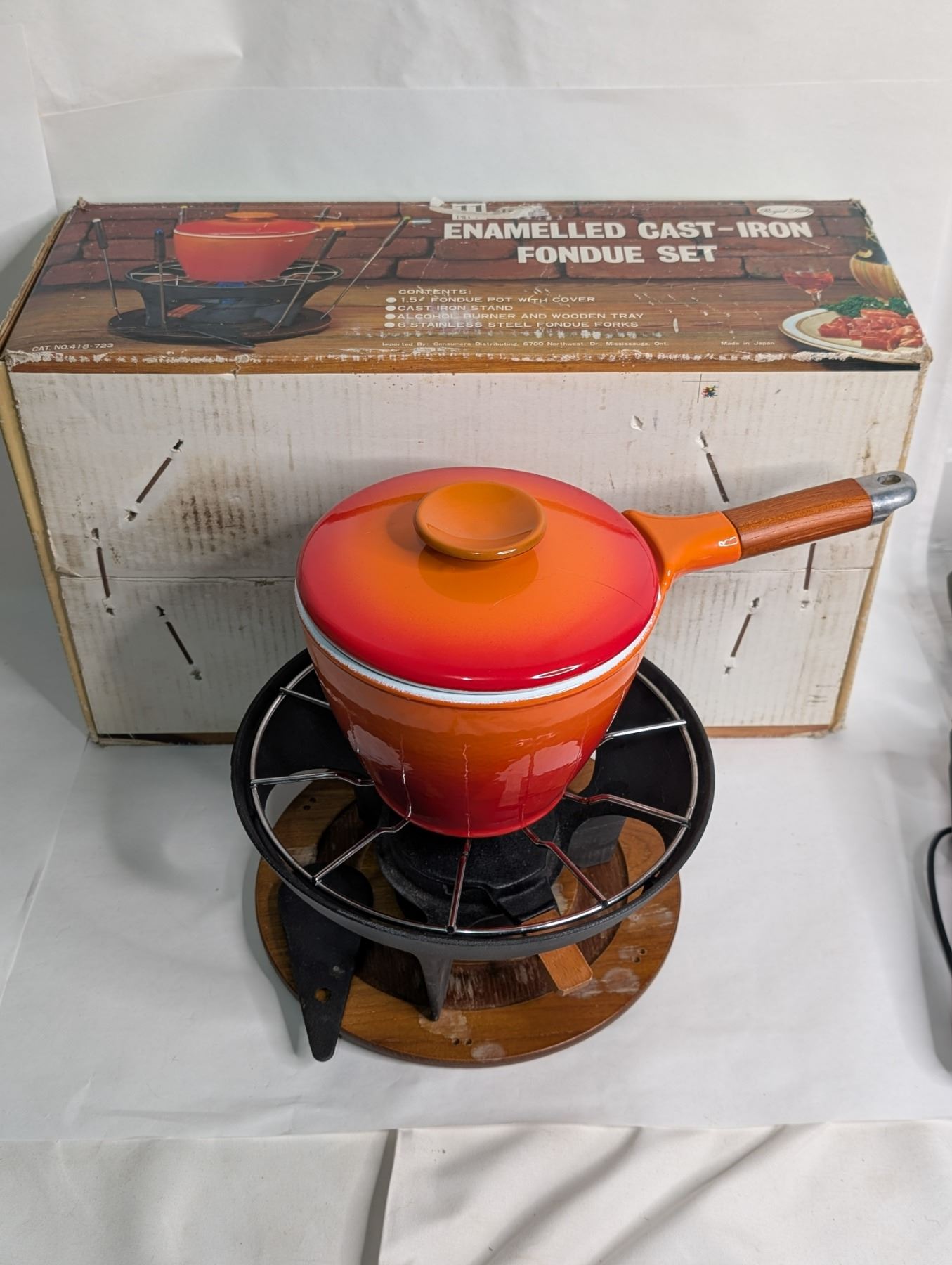 Cast Iron Enamel Fondue Pot Burner Set (no forks)
