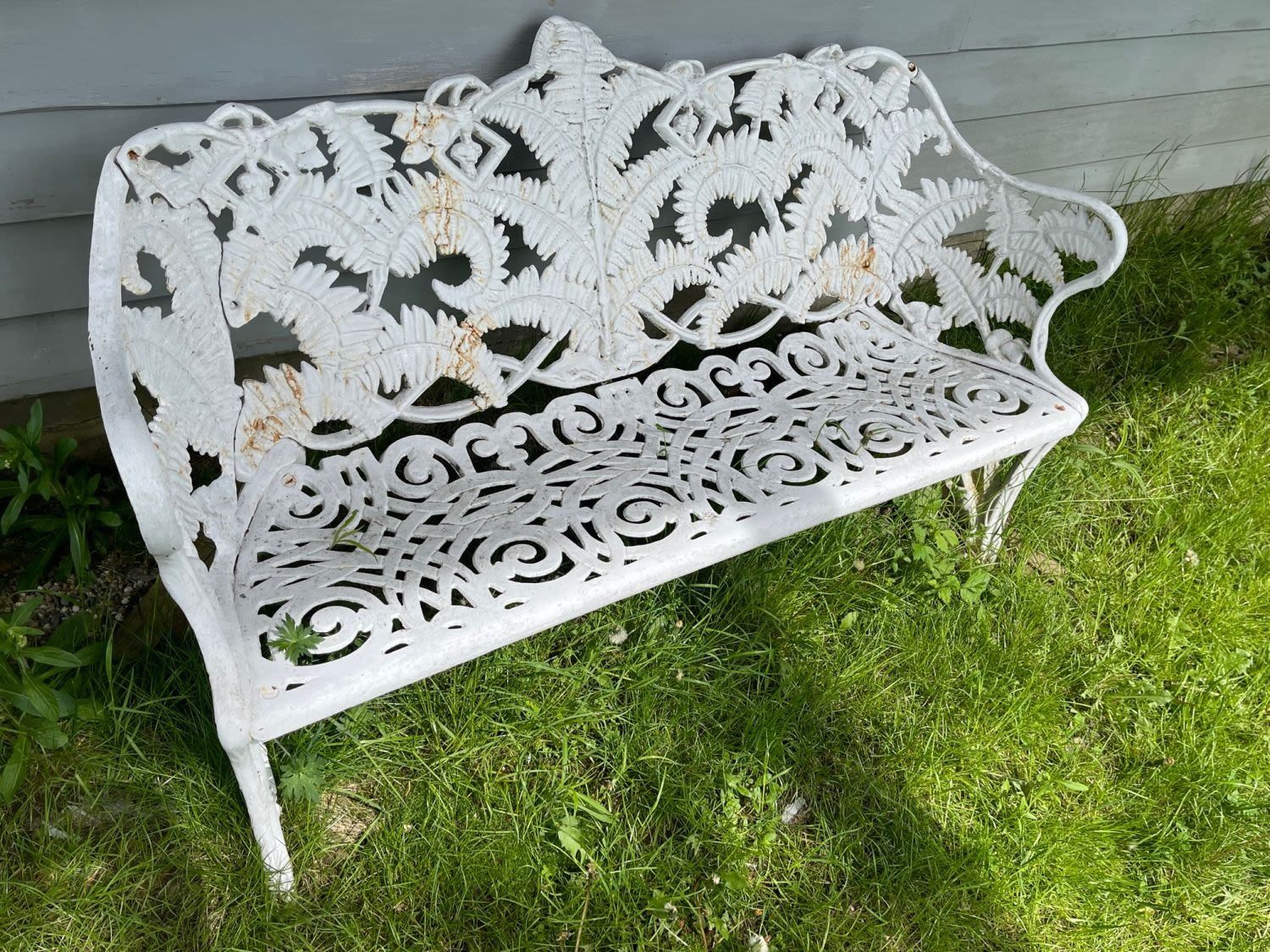 Cast Iron Fern Garden Bench White