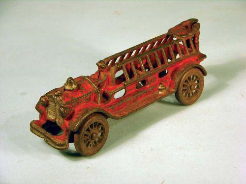 Cast Iron Fire Engine Toy, Rear Driver Head is broken off good condition, 7 1/2 x 3 x 2 inches.