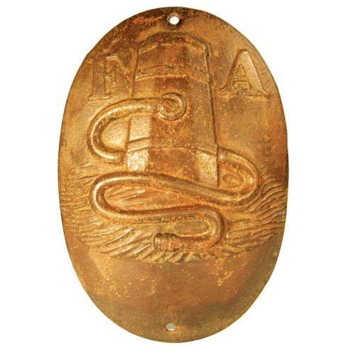 Cast Iron Fire Mark, Embossed FA, taken off a building in S. Philadelphia circa 1810. Some rust otherwise good original condition. 8 X 12 inches.
