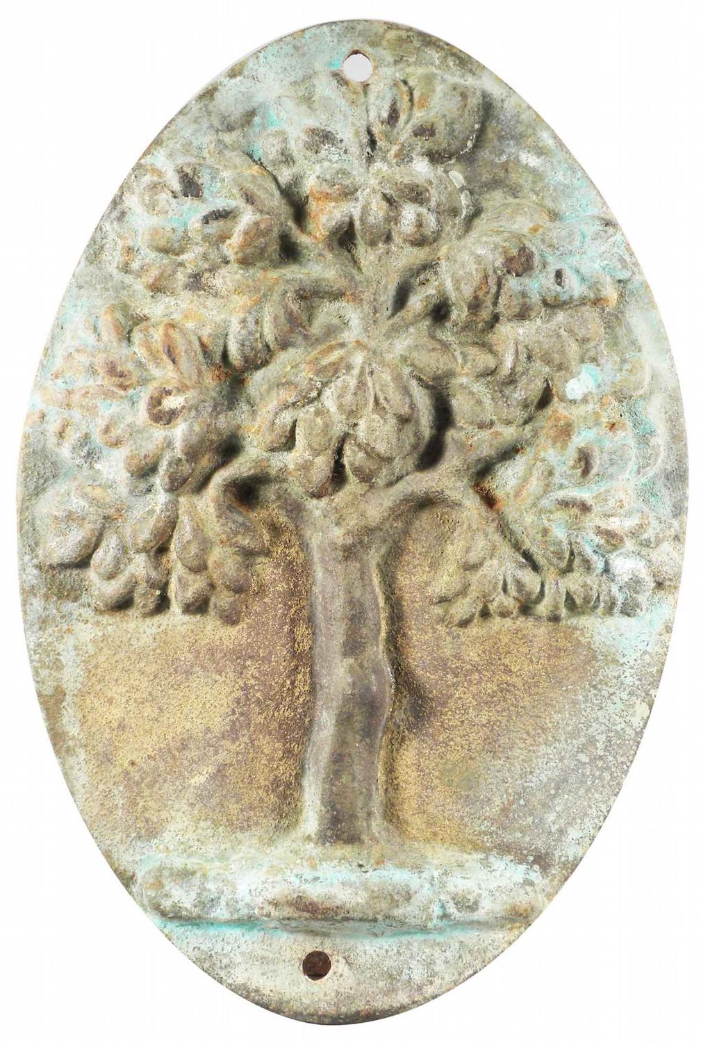 Rare Cast Iron Fire Mark, "The Green Tree". Issue of 1806. Mutual Insurance Company for Insuring Houses from Loss by Fire, Philadelphia. Known as "small black flat". The second iron mark issued by this company. Good original condition. 8 1/2 X 12 inches.