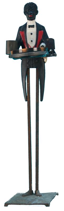 Cast-Iron Floor Model Butler Figure Holding Ash-Tray w/ match book holder - 34" tall