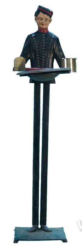 Cast-Iron Floor Model Philip Morris "Johnny" Figure Holding Ash-Tray w/ match book holder - 32" tall