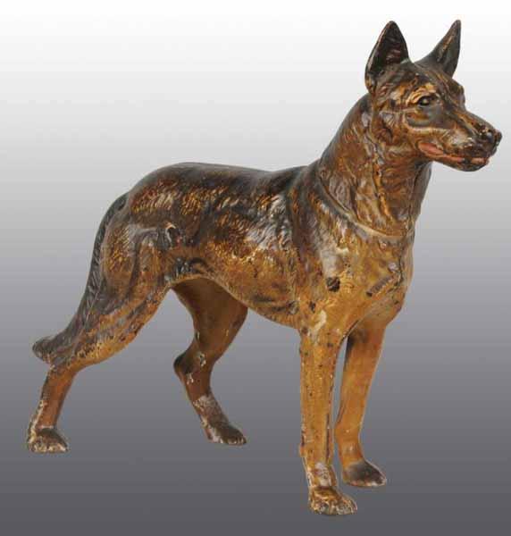 Description Made by Hubley, cat. #380. Full-figure casting of German Shepherd facing forward. Condition (Excellent). Size 11” x 14”.