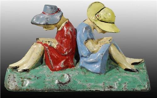 Description Depicts two girls reading, sitting back to back. They each are wearing fantastic hats. Book example. Provenance: Watt White Collection. Condition (Excellent Plus). Size 4 - 3/4" x 8 - 1/2".