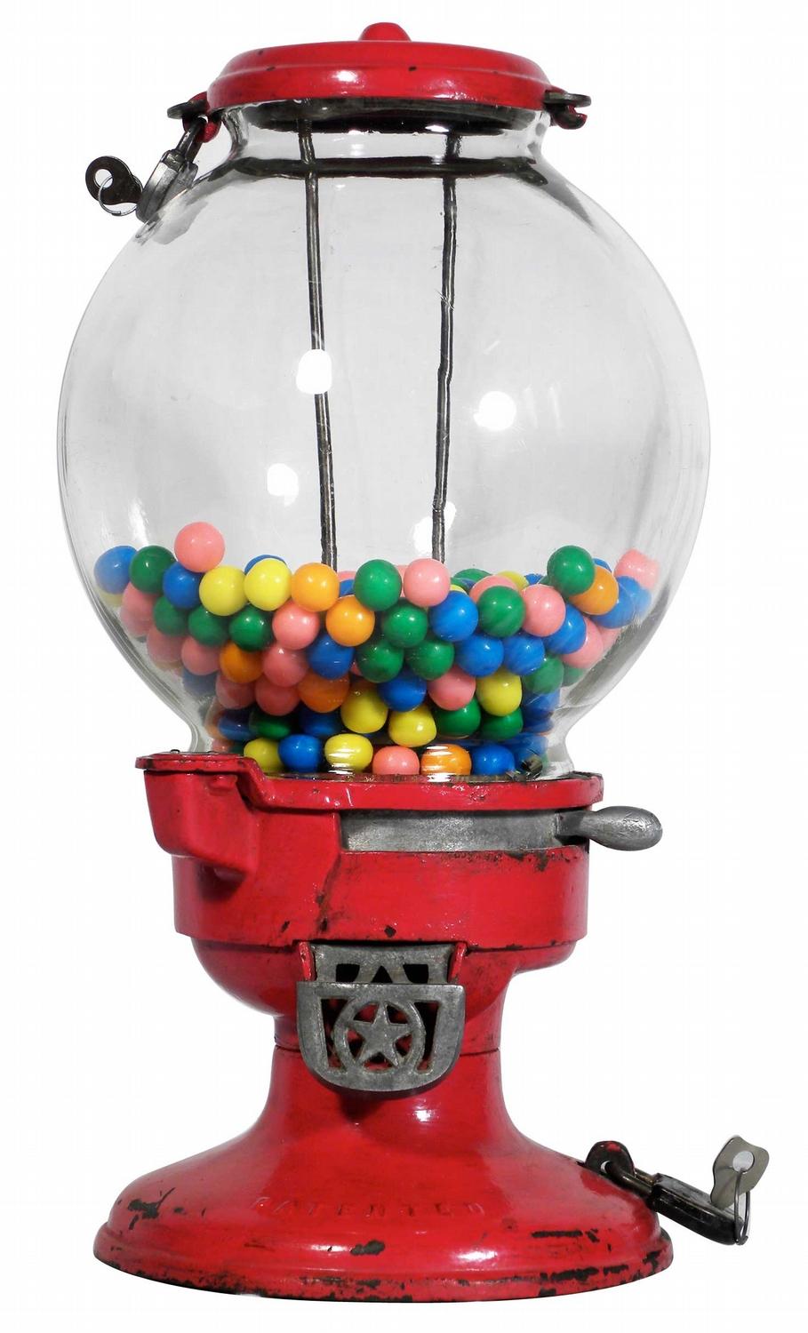 Cast Iron Gumball Machine. One cent, with original locks and keys. Excellent original condition. 8 1/2 inch diameter X 16 1/4 inches tall.