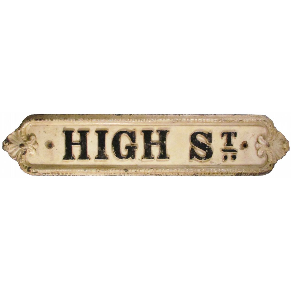 Cast Iron "High" Street Sign. Excellent condition. 38 X 8 1/2 inches.