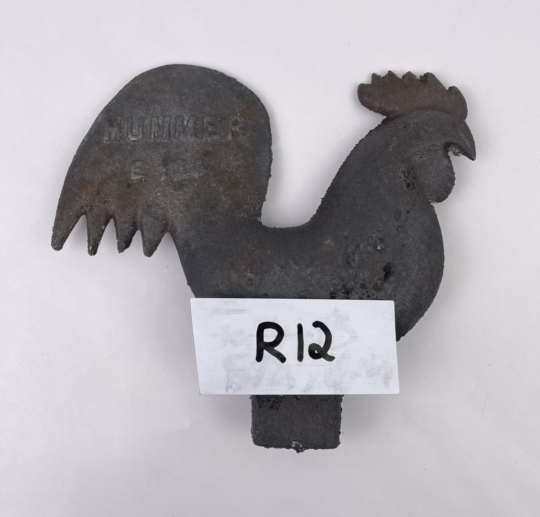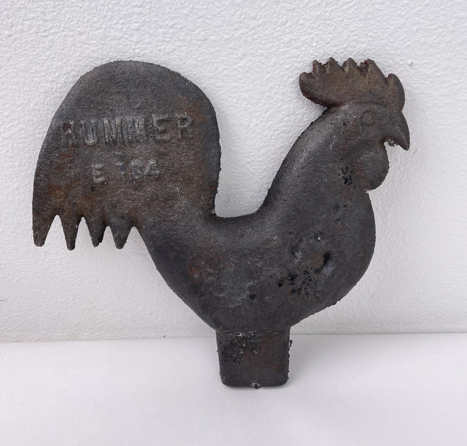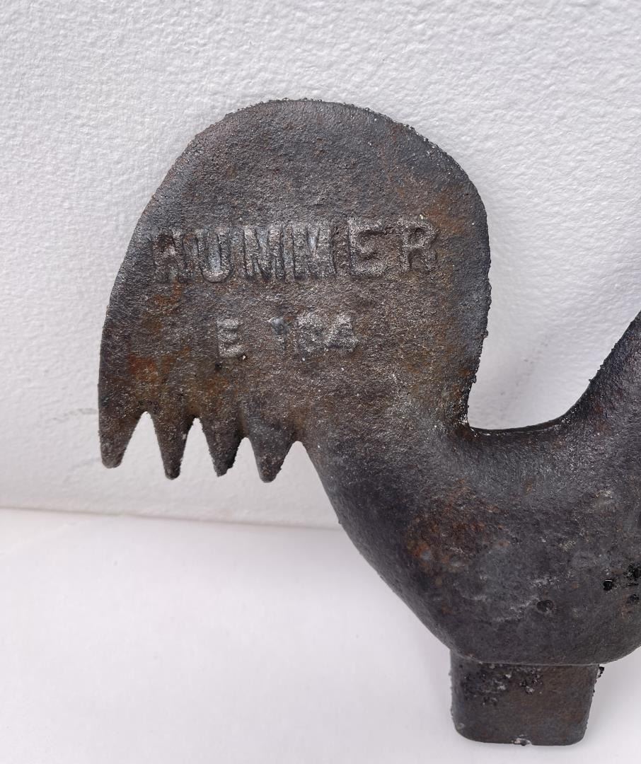 E184. 8 1/2" tall, 9 1/2" long. Was painted but has been stripped and is ready to be painted or displayed.