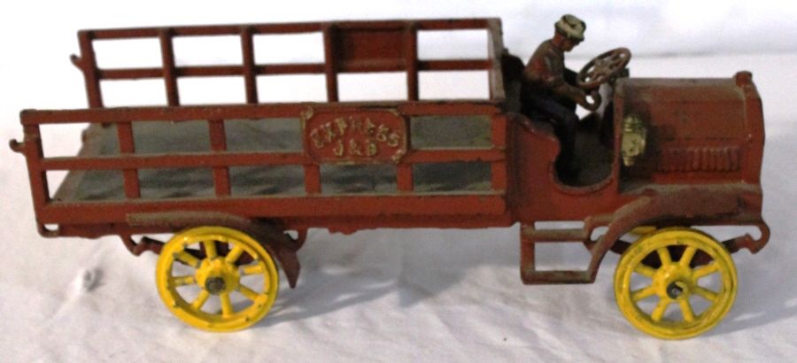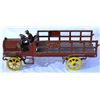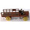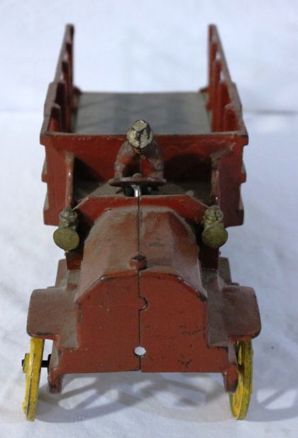 14 3/4" long x 5 1/4" tall. Retains most of its paint, possibly some touch-up on wheels. Front axle has been replaced. Overall very nice toy