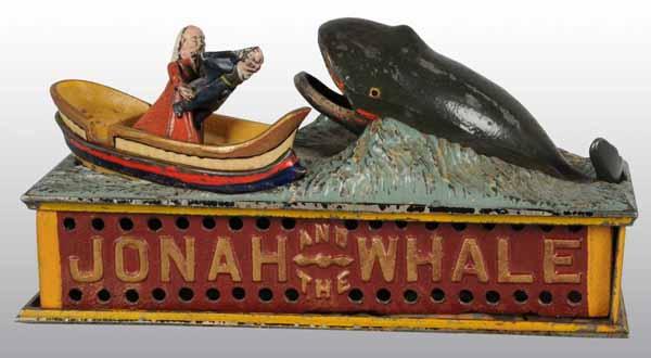 Description Manufactured by Shepard Hardware Company. Some early repaint to base. Condition (Very Good). CORRECTION - Repro panel. Touchup to figure in boat and repair to boat.