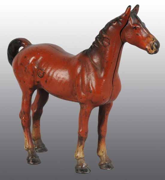 Description Made by Hubley, cat. #345. Full-figure. Referenced in Hubley catalog as, “Perfectly proportioned and a very nice casting. Painted in bay color”. Condition (Very Good). Size 10 - 1/2”.
