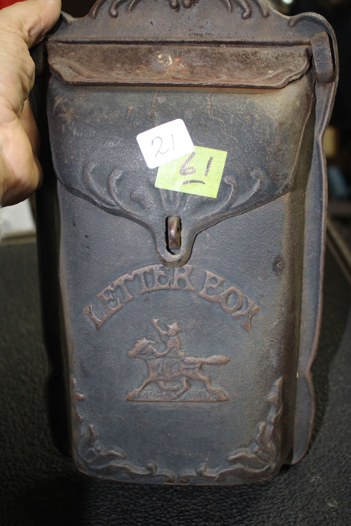 Cast Iron Mail Box with a Cowboy Riding a Horse Motif