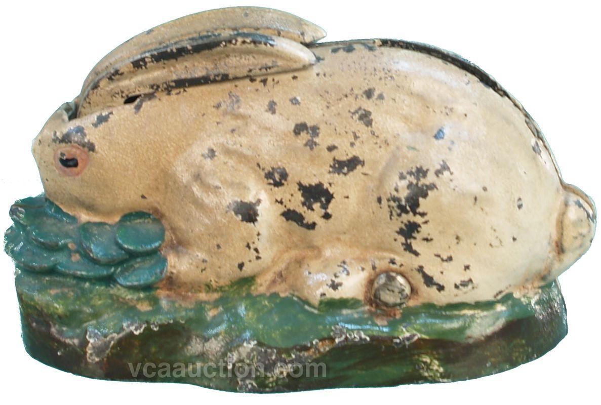 Cast-Iron Mechanical Bank In Shape Of Rabbit w/ Original Paint