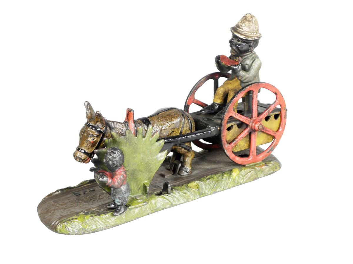 Cast Iron Mechanical Bank, entitled "Bad Accident". Very good original condition with 90% of original paint intact. 10 X 6 X 3 1/2 inches.