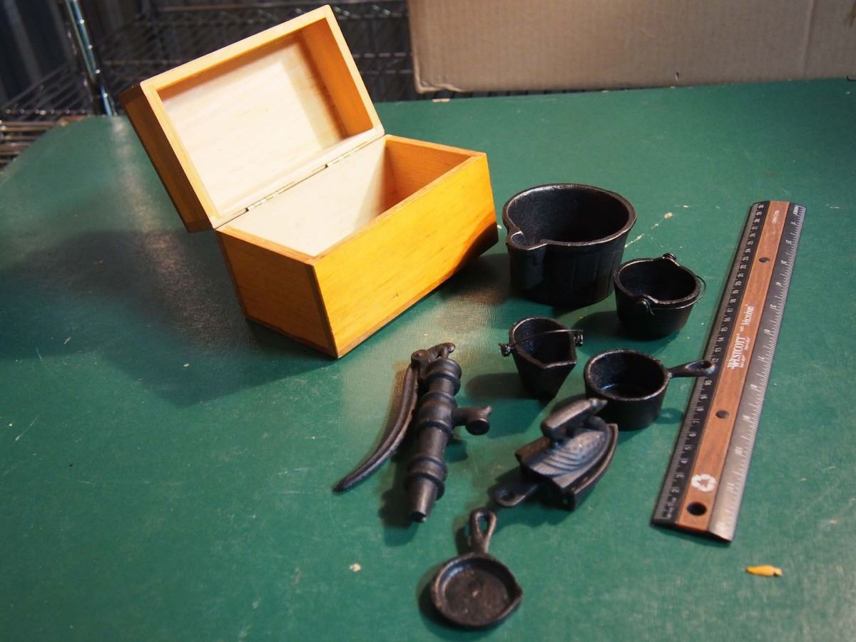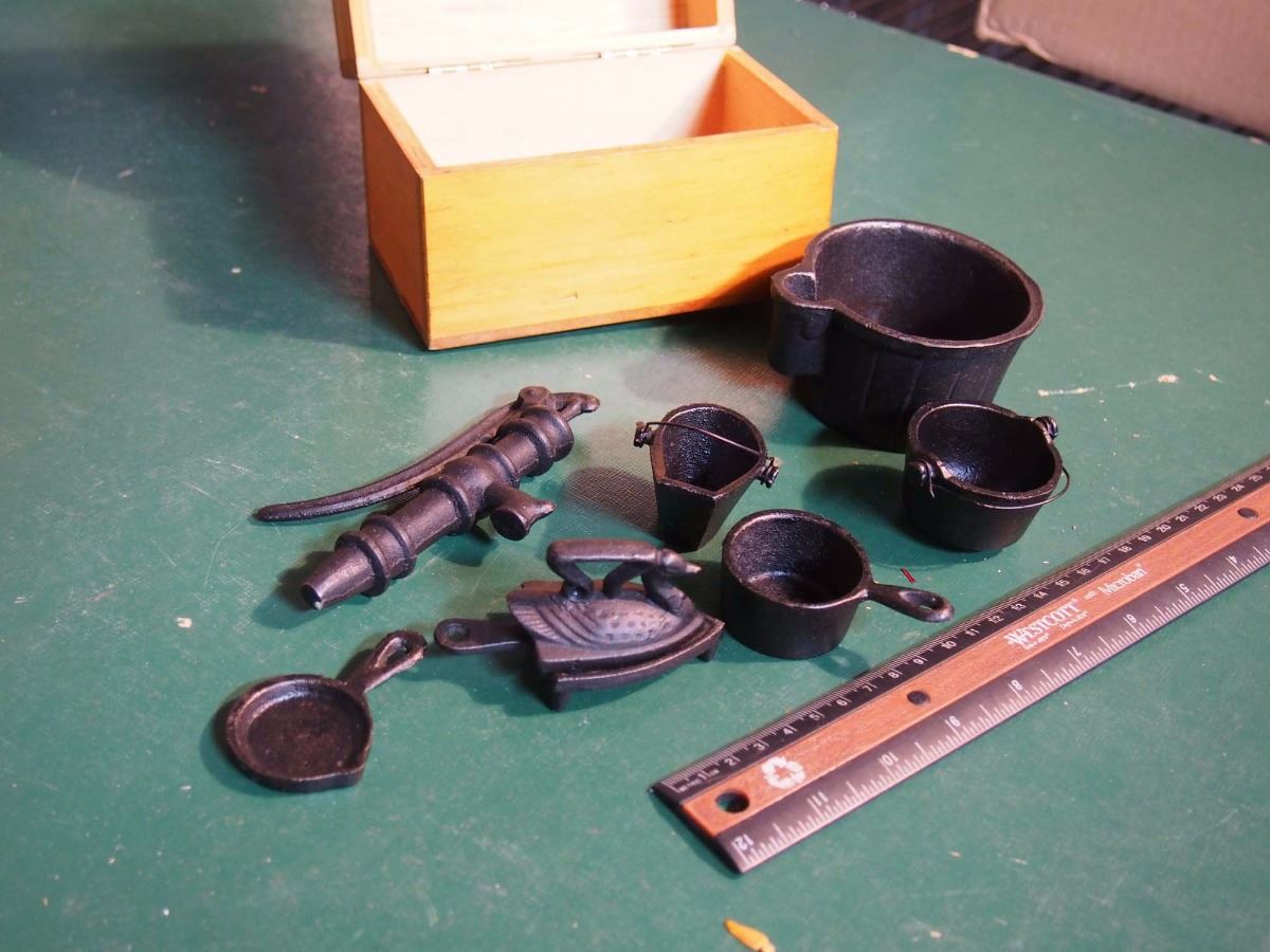 Cast Iron Miniatures With Wood Box
