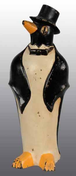 Description Made by Hubley, cat. #463. Full-figure dapper penguin dressed in his tux. Condition (Excellent). Size 10 - 1/2” x 3 - 3/4”.