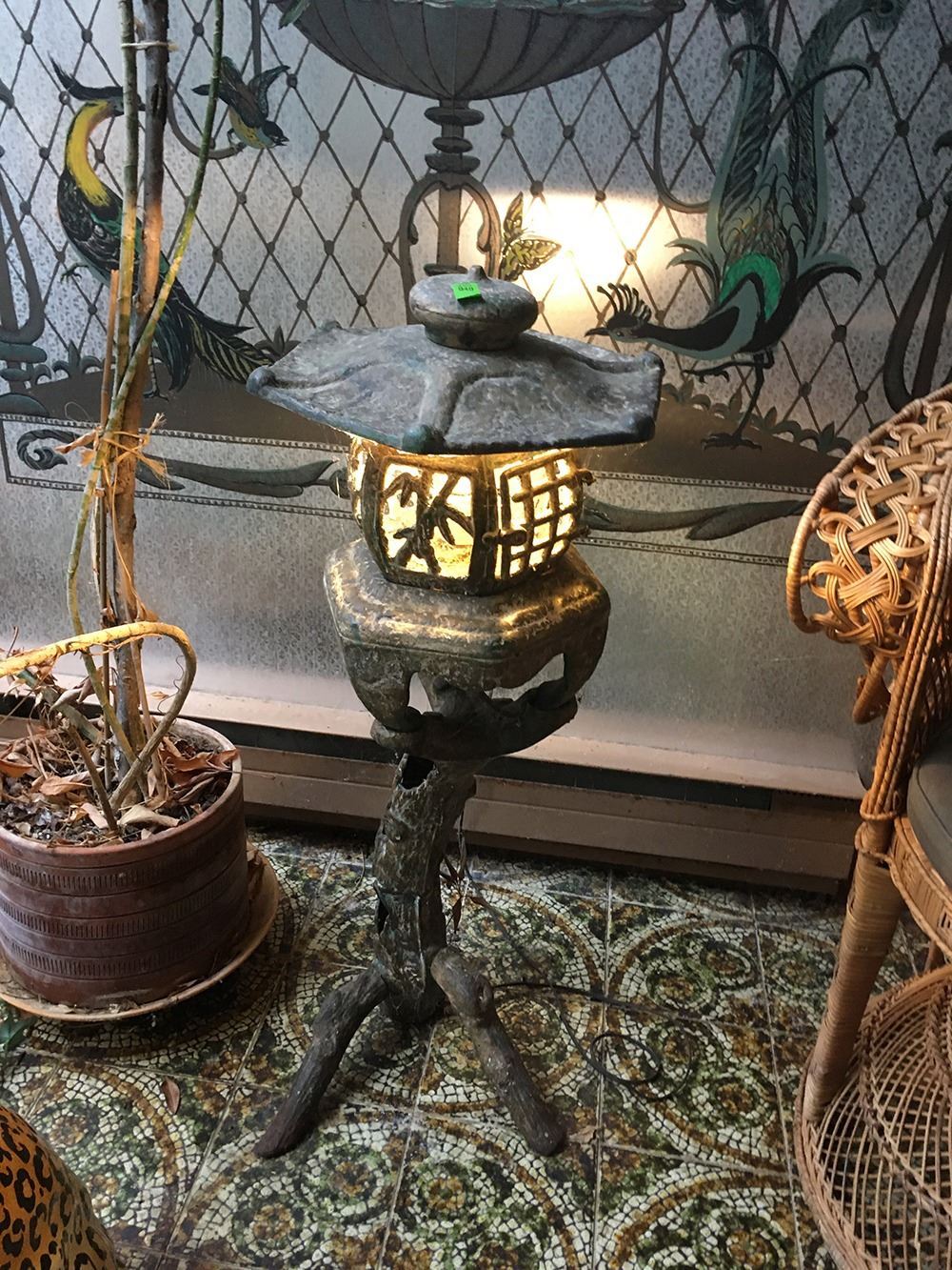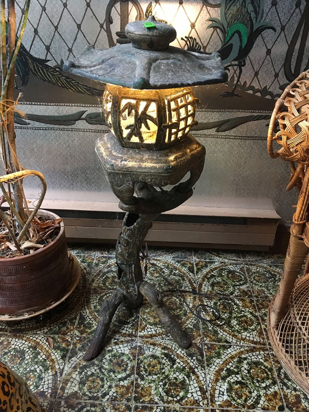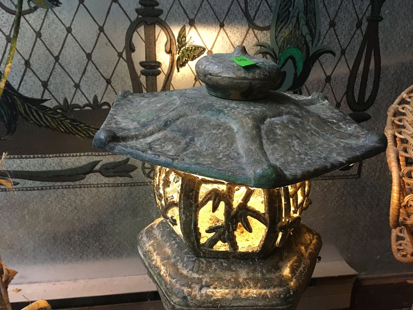 Cast iron pergoda statue lamp. Measures approx. 34 inches tall. pd