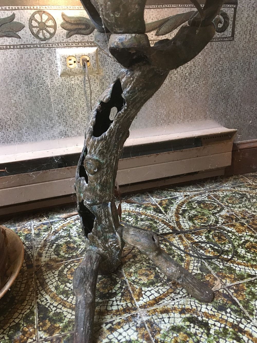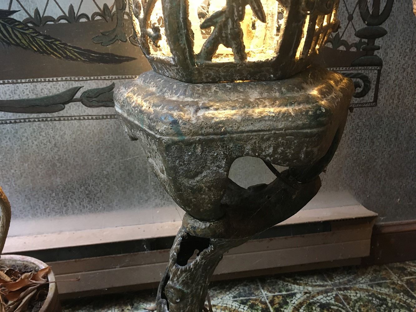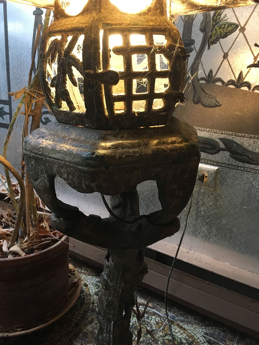 Cast iron pergoda statue lamp. Measures approx. 34 inches tall. pd