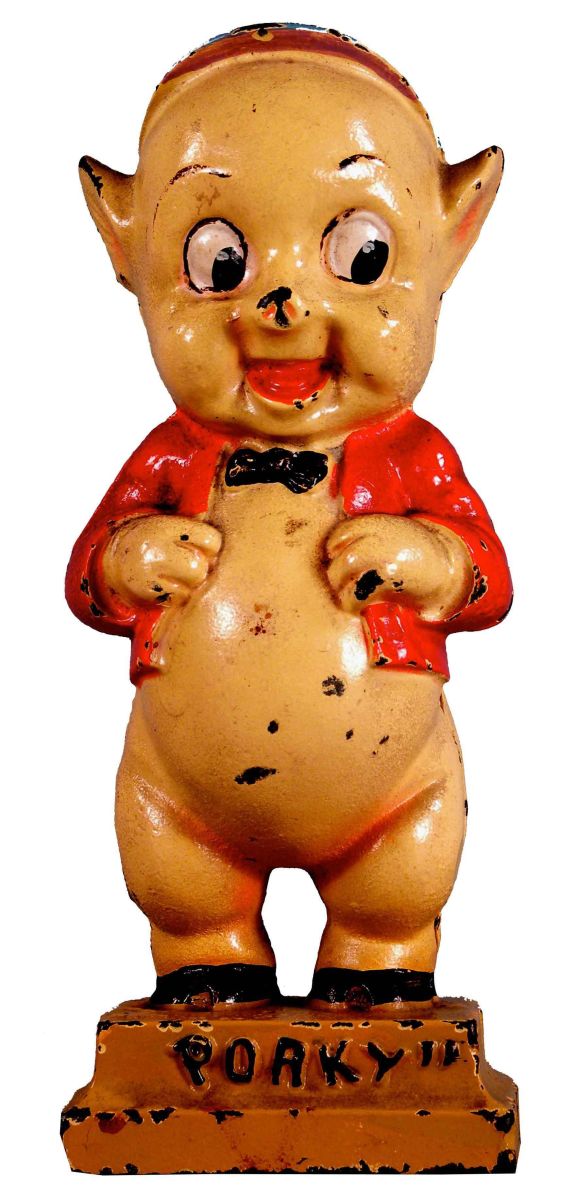 Cast Iron Porky Pig Still Bank. A few minor scratches otherwise excellent condition. 5 3/4 inches tall.