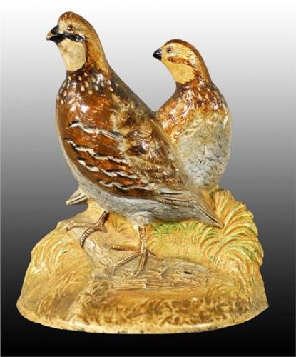 Description Made by Hubley and numbered "459". Signed by designer "(c) Fred Everett". Natural realistic colors. Condition (Excellent). Size 7 - 3/4" x 6".