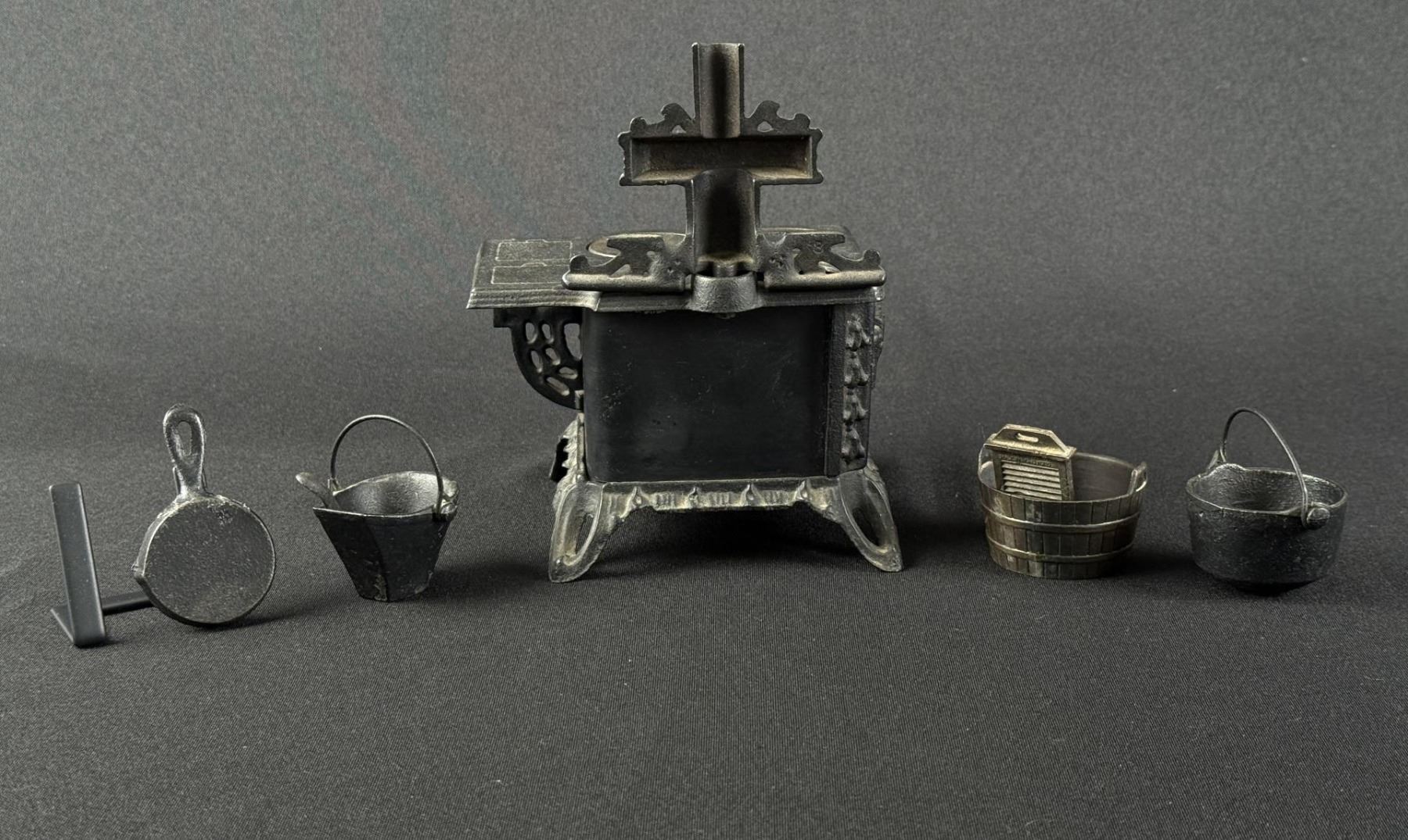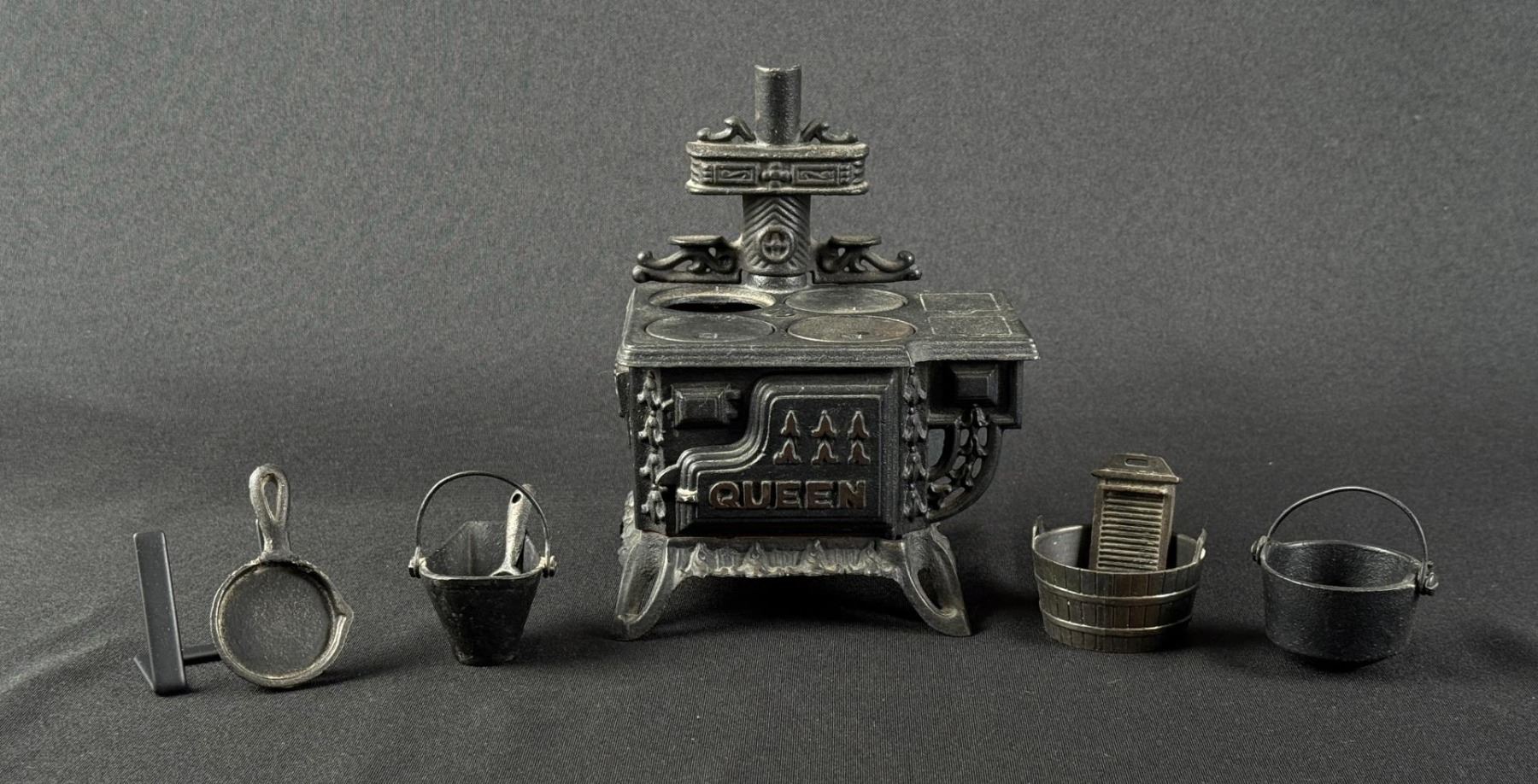 One burner cover missing. Lots of accessories. 6 3/8" by 5 1/4" by 4 3/8".