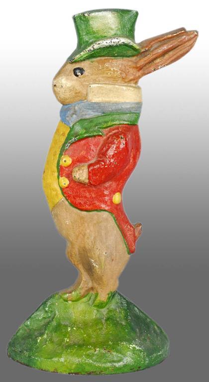 Made by National Fdry. Wonderful whimsical caricature of rabbit in coat tails and bow tie. Figural Cast Iron Condition (Near Mint). Size 9 - 7/8" x 4 - 5/8".