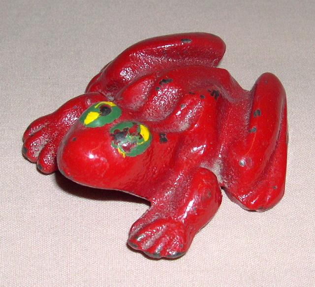 Cast into the bottom, 3"x3", nice original paint, eyes are a little chipped up