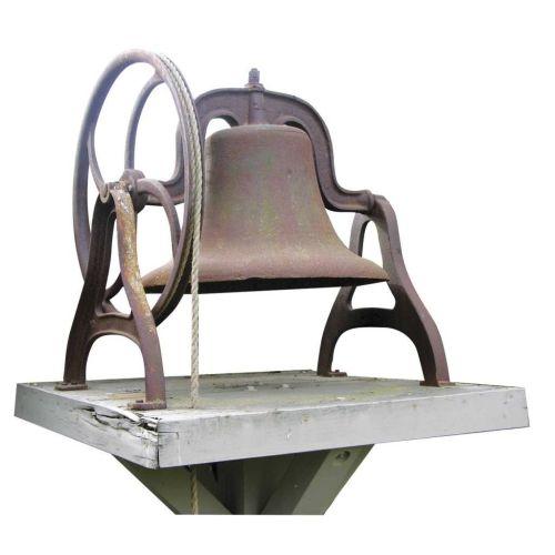 Cast Iron School Bell from Montana. Number 26. Rusty outdoor condition. 24 inches tall X 25 inch diameter.