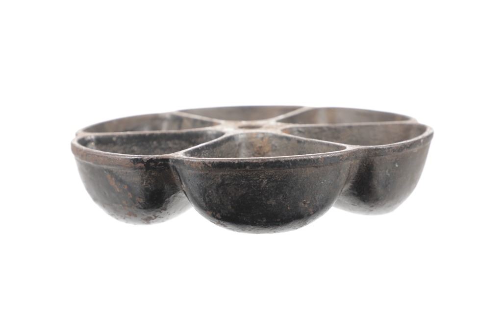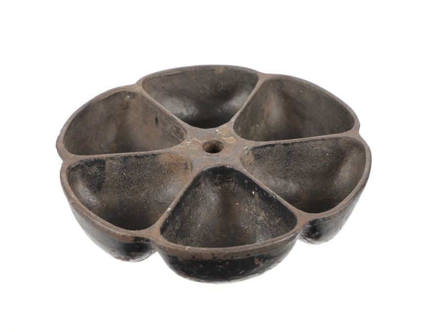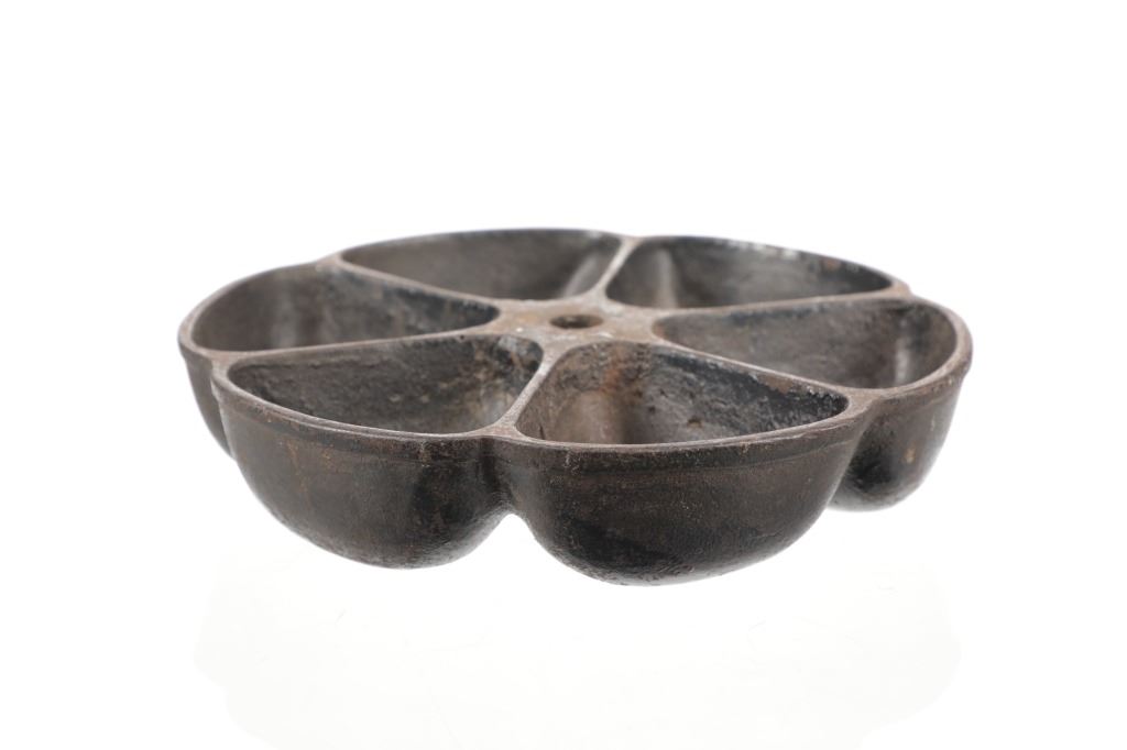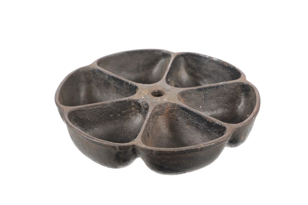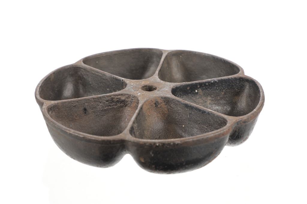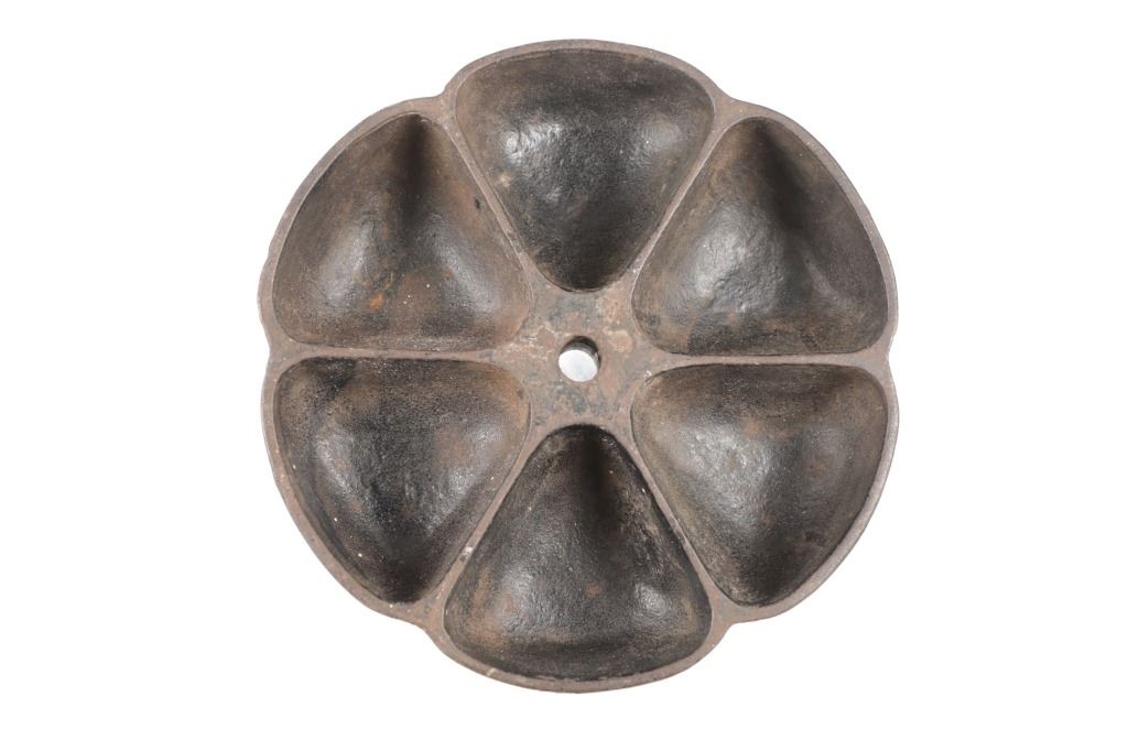 Featured in this lot is this Cast Iron six tray star nail sorting tray circa 1950's. The sorting tray features a wonderfully and professionally crafted cast iron construction that shows six sorting sections that are used for sorting nails or hardware. The condition of this cast iron sorting tray is well preserved with some slight oxidation to the tray but otherwise is in well preserved condition. The measurements of this sorting tray is 9 1/4" x 9 1/8" x 2". The collective weight of this sorting tray is 7lb 2oz.
