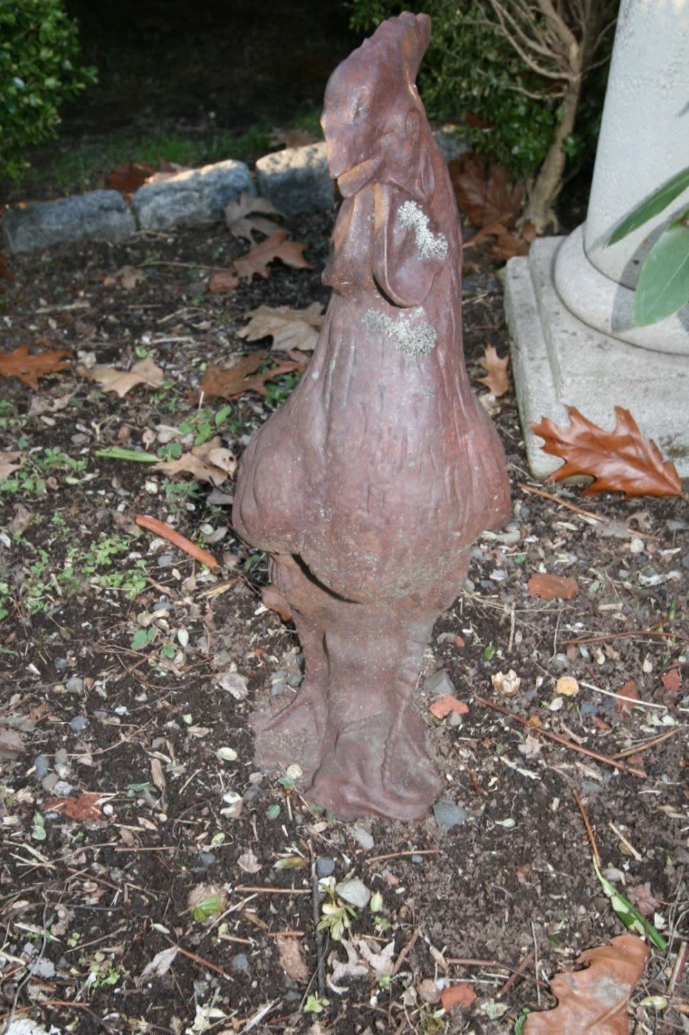 Cast Iron Rooster is the size of an average rooster, a statement piece in any garden or landscape area. Dimensions, 21 " h x 12 " long from longest points.