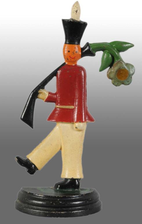 Numbered "10001" on back of base. Professional repair to flower at gun. Minor paint touchup. Figural Cast Iron Condition (Excellent). Size 12 - 7/8" x 7 - 1/8".