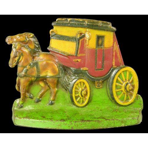 Cast Iron Stage Coach Door Stop. Most original paint intact. Excellent condition. 8 1/2 wide x 6 1/2 tall.