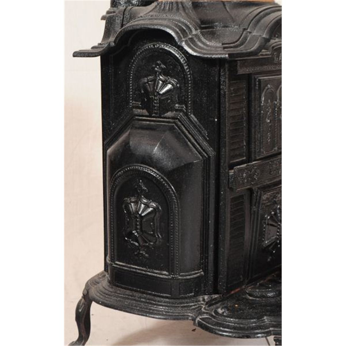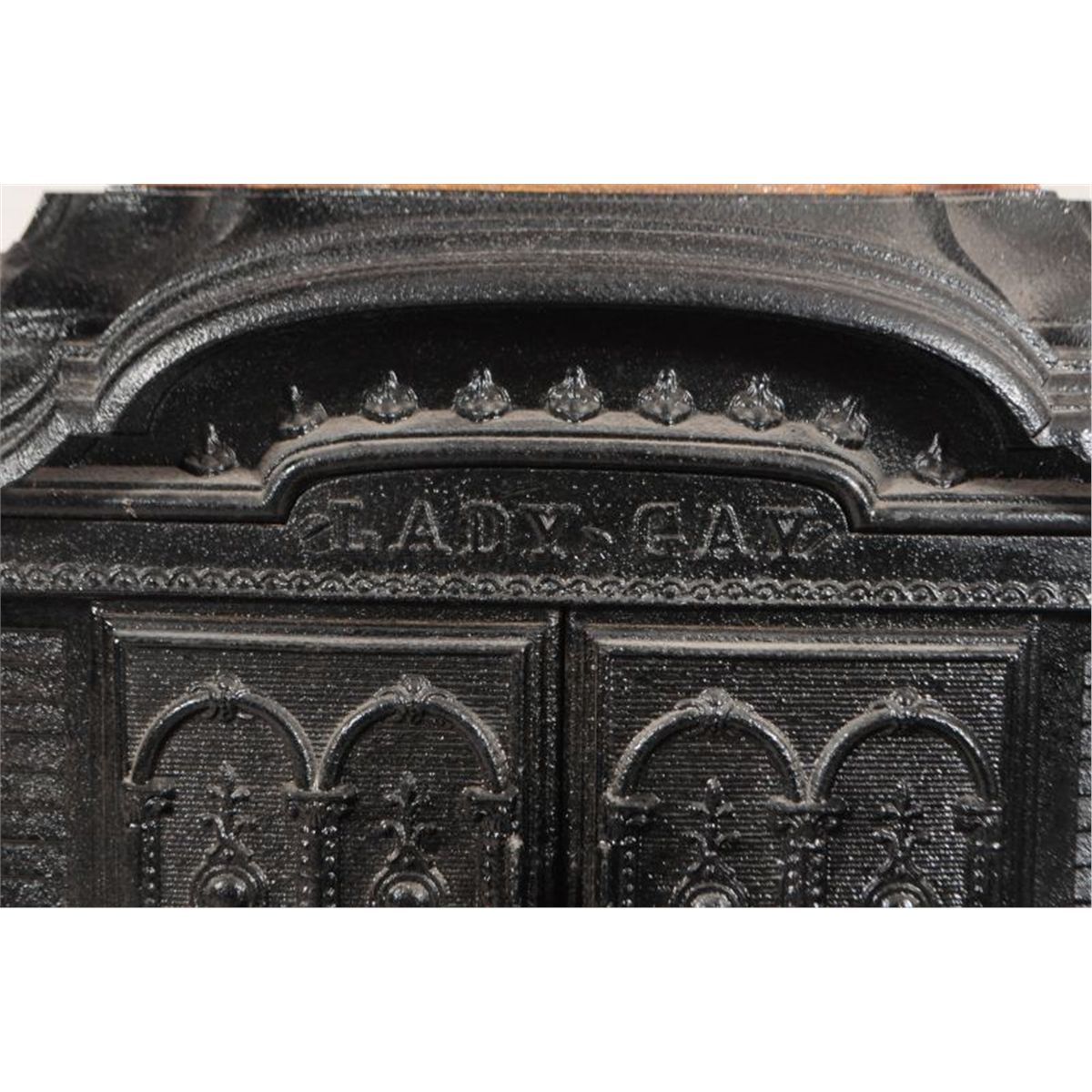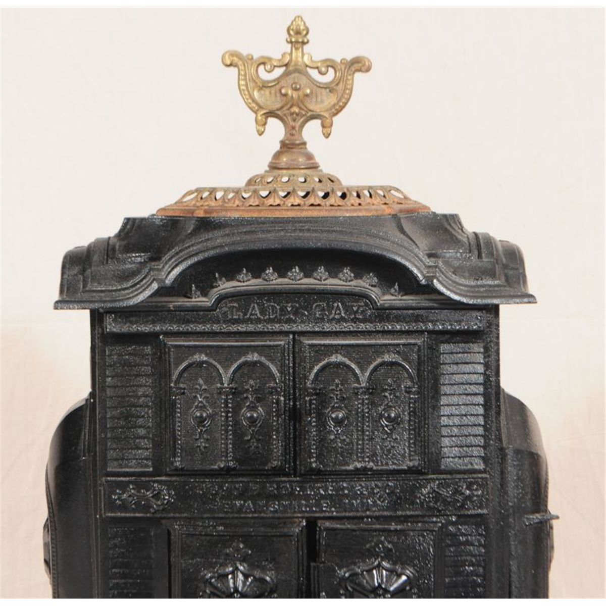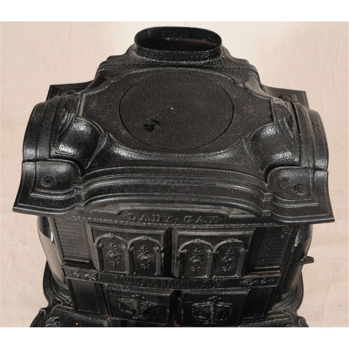 Freestanding Cast Iron Lady Gay Stove 1860's, out of Jamie Maverick Estate Fredericksburg, Texas, Owner of Sunshine Ranch. Measures 36" x 24" x 24" Jamie Maverick was the youngest great grandchild of Samuel Maverick.