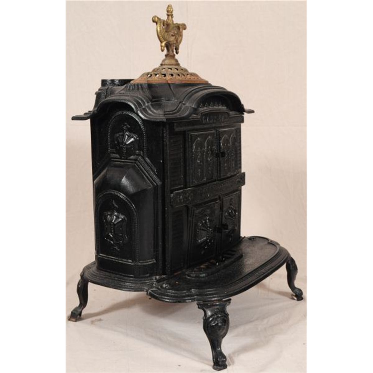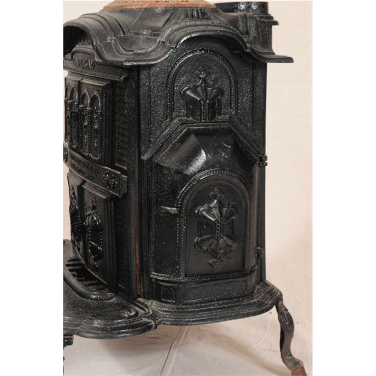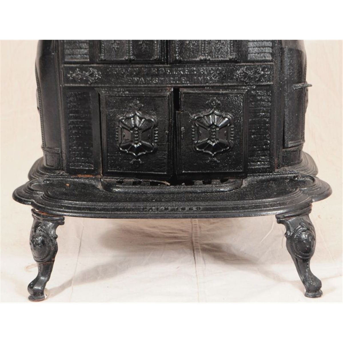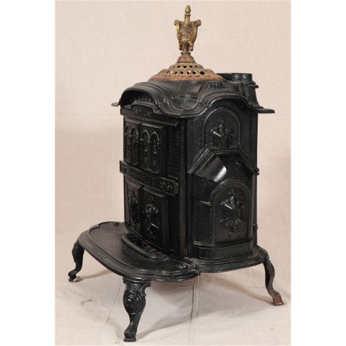 Freestanding Cast Iron Lady Gay Stove 1860's, out of Jamie Maverick Estate Fredericksburg, Texas, Owner of Sunshine Ranch. Measures 36" x 24" x 24" Jamie Maverick was the youngest great grandchild of Samuel Maverick.