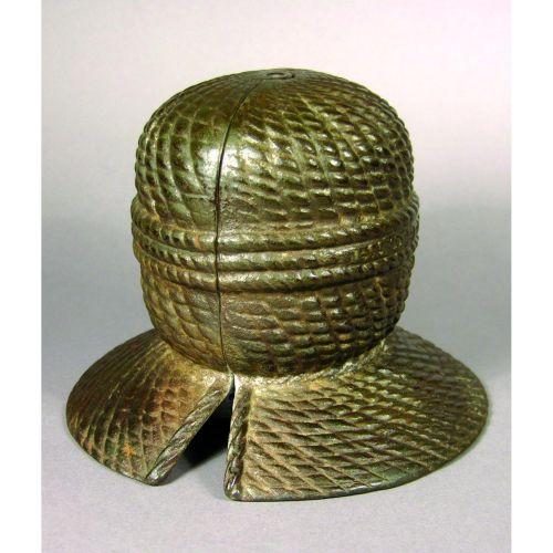 Cast Iron String Holder in the shape of a ball of string. Patent 1860. Excellent condition. 6 1/2 inch diameter X 5 inches tall.