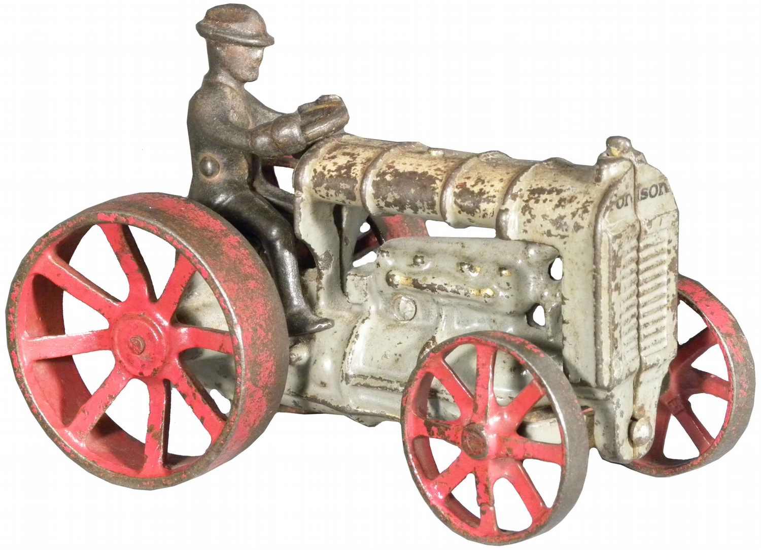 Cast Iron Tractor w/Driver Toy. Flat spoke wheels. Excellent original condition. 6 inches long.