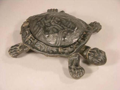 Cast iron turtle spittoon with original cast iron pan. 14" long, Ex. cond.