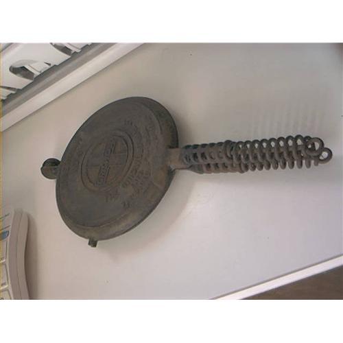 Cast Iron Waffle Maker "Griswold" 1908. American No 8 by Griswold Mfg Co Erie, Pa USA. Pat DEC 1, 1908 # 886. Great old one and still good enough to make waffles with. The insides are nice and clean, and the outside could use a cleaning, but I did not want to take away it's look. It is a great one and in very nice condition, it is 16" L with handle, and 8" W. Great old one and a very decoration item also. Anyone who collects older cast iron items like this , well take a good look here. You don't find them like this anymore. Hope you like it. The handle is all spring coil and in great shape. LOOKS GREAT FOR BEING THIS OLD. LOWER RESERVE TO SELL
