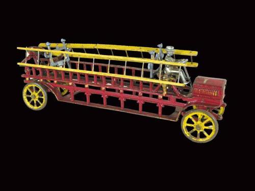 Cast Iron toy hook and ladder truck, unknown maker, 17 inches long, Good Cond.