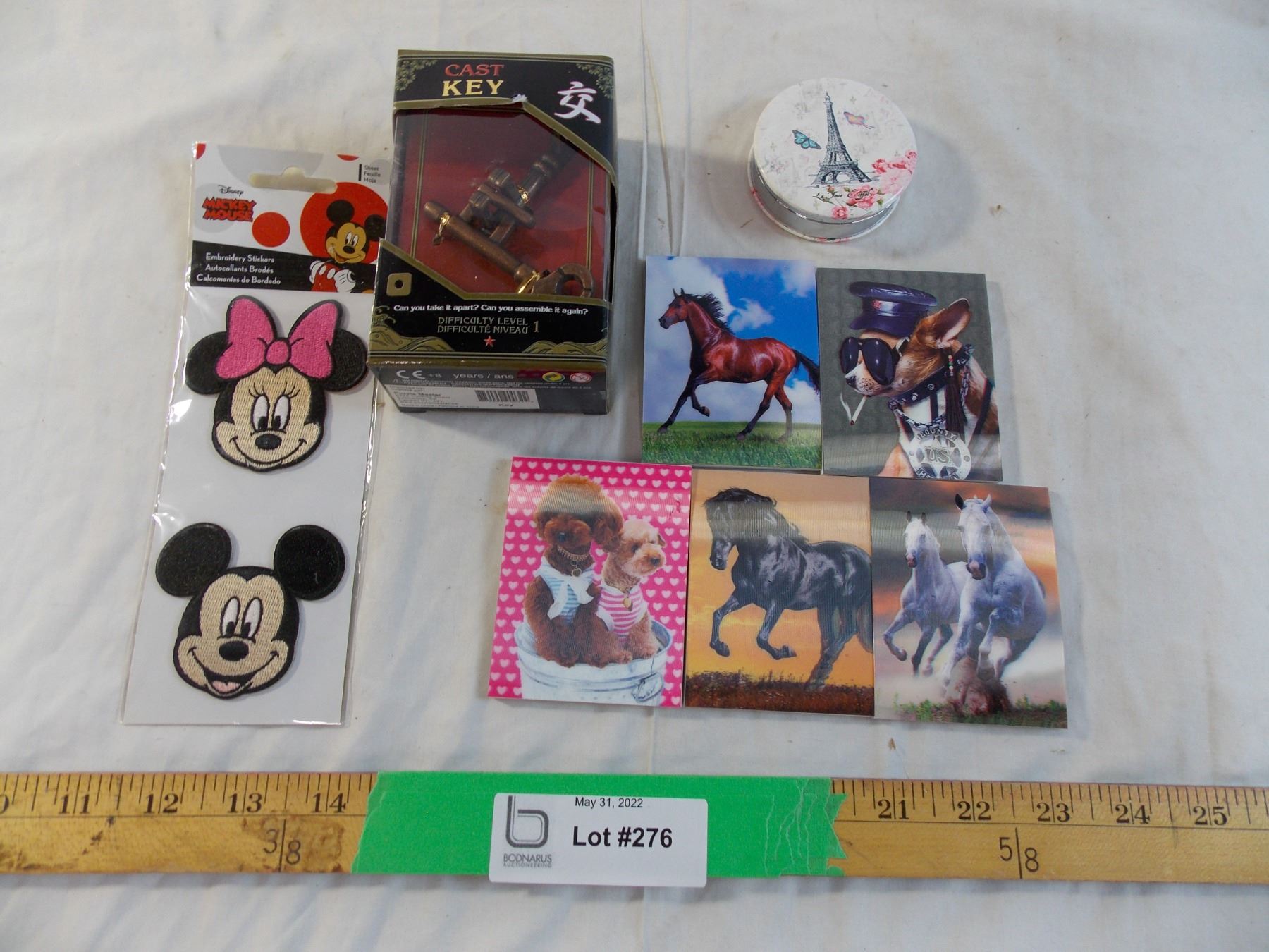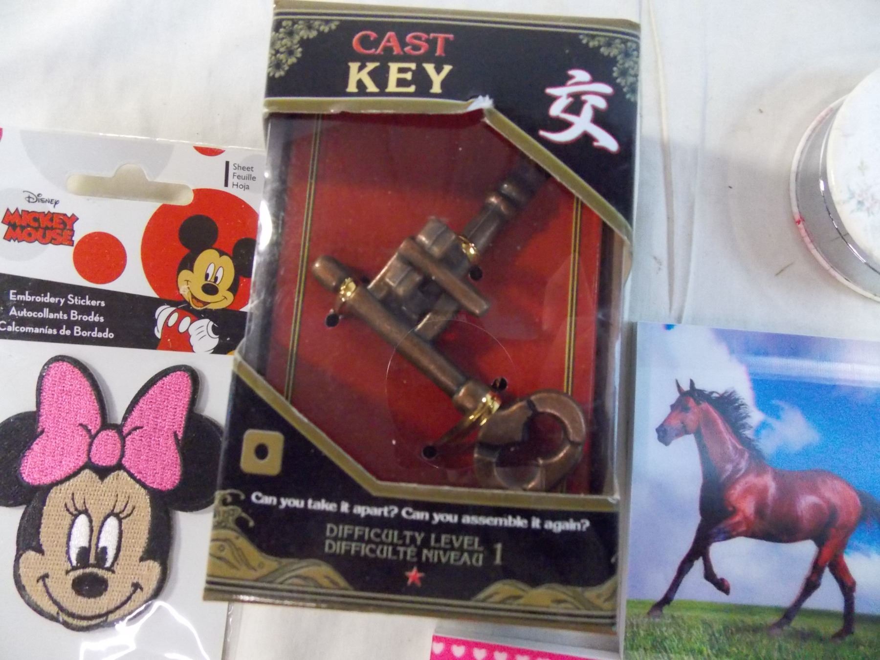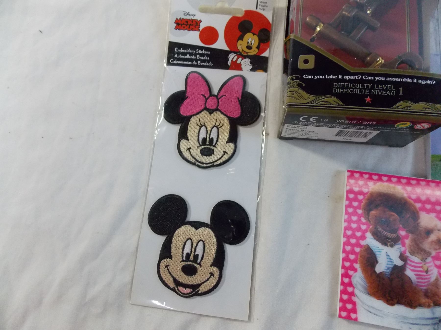 Cast Key puzzle, paper note pads, mickey mouse badges