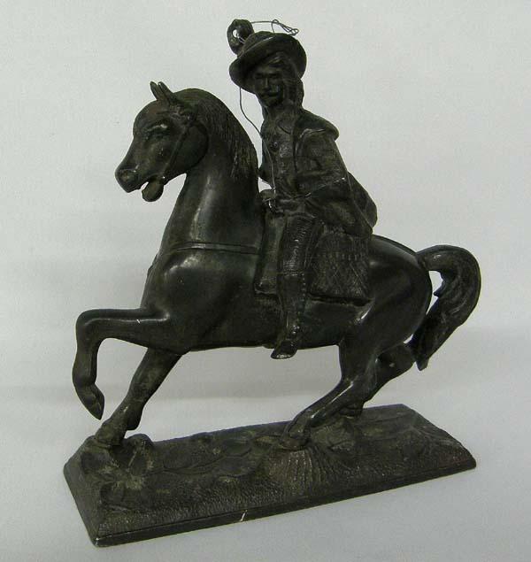 Metal Horse and Rider Statue, measures approx. 8.5'' x 8''. SHI $30.
